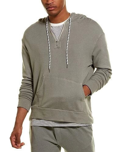 - 1/4-Zip Hoodie in gunmetal with bungee drawstring, dropped-shoulder sleeves, and kangaroo pocket