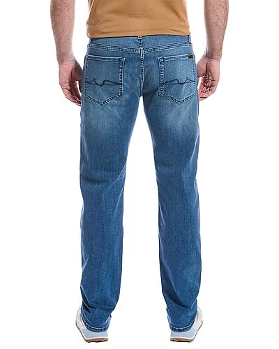 - Slimmy Slim Straight in active sport mid blue with belt loops, whiskering and fading details, and classic five-pocket styling
