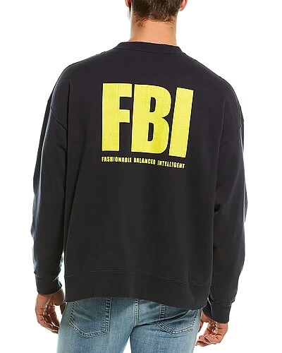 - FBI Sweatshirt in black with crewneck, graphic design and distressed detailing