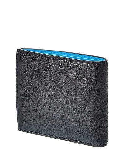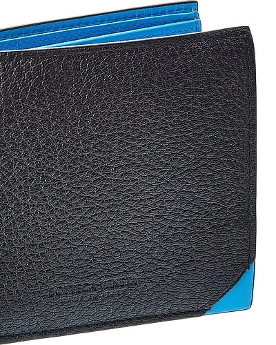 - Leather Bifold Wallet in black and light blue leather with embossed logo