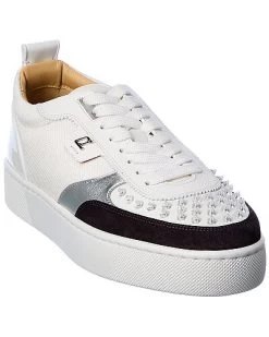 - Happyrui Spike Mesh & Leather Sneaker in white, black and silver mesh, leather and suede and silver-tone hardware with logo accent and clear spike embellishments
