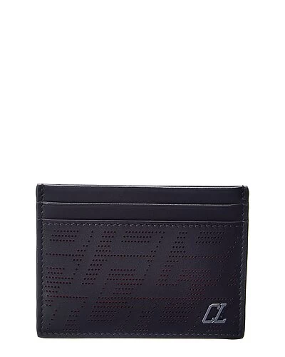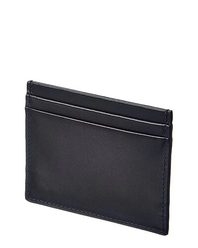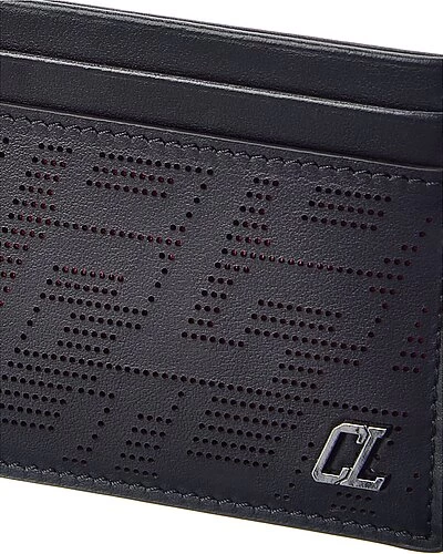 - M Kios Leather Card Holder in black leather and silver-tone hardware with perforated logo detailing, metal logo accent and card slots