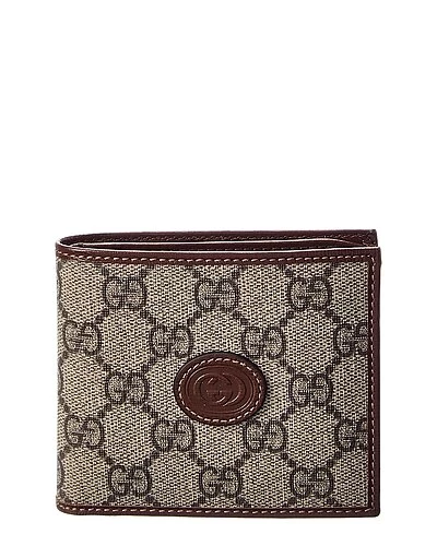 - Interlocking G GG Supreme Canvas & Leather Bifold Wallet in GG Supreme canvas and brown leather with interlocking G logo patch