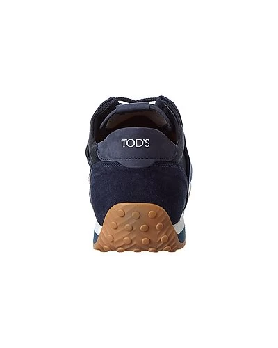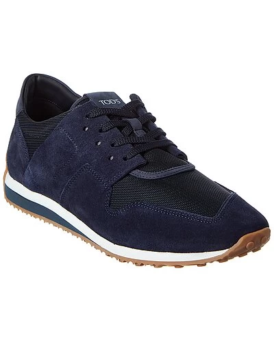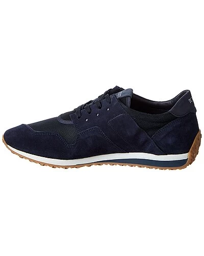 - Suede & Mesh Sneaker in navy suede and mesh with logo tag